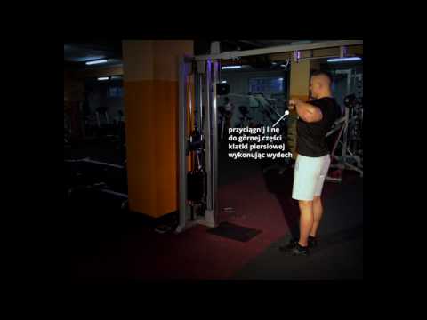 Przyciąganie liny z wyciągu górnego do klatki piersiowej