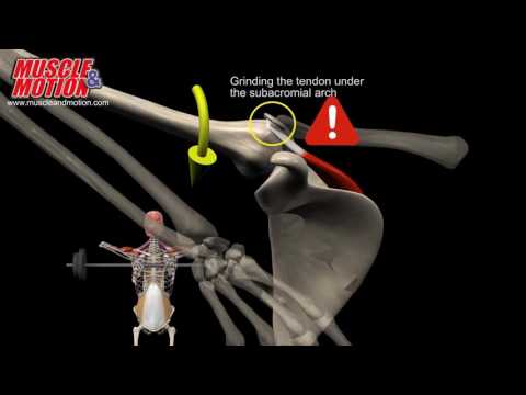 Złym wyborem będzie podciąganie sztangi pod brodę. Odwodzenie wraz z rotacją wewnętrzną stawu ramiennego powodują nacisk na kaletkę maziową oraz ścięgno mięśnia nadgrzebieniowego, co przyczynia się do powstawania zespołu cieśni barku, który może powodować dolegliwości bólowe. Cały mechanizm ukazany jest na filmie.